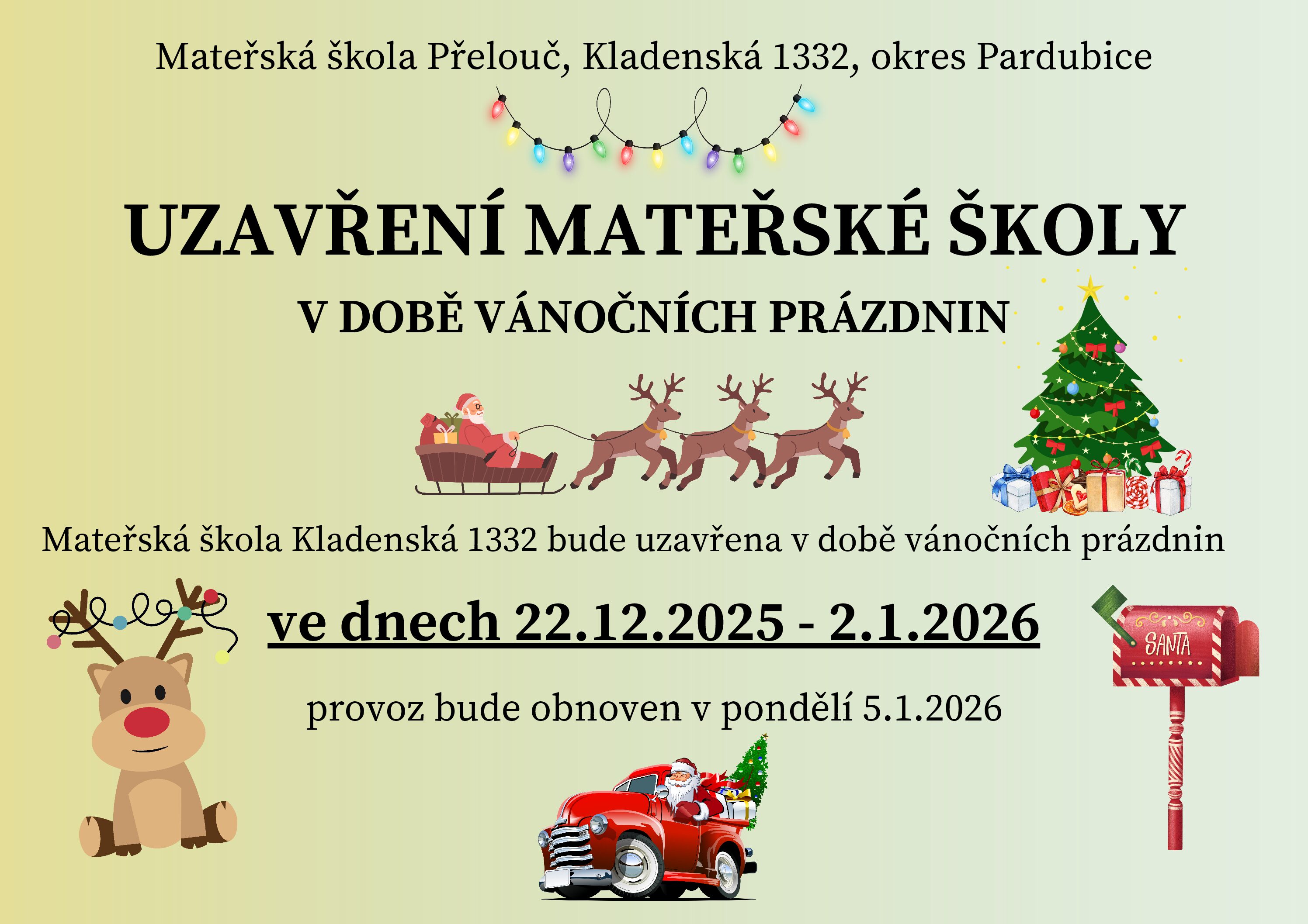 UZAVŘENÍ MŠ V DOBĚ VÁNOČNÍCH PRÁZDNIN
